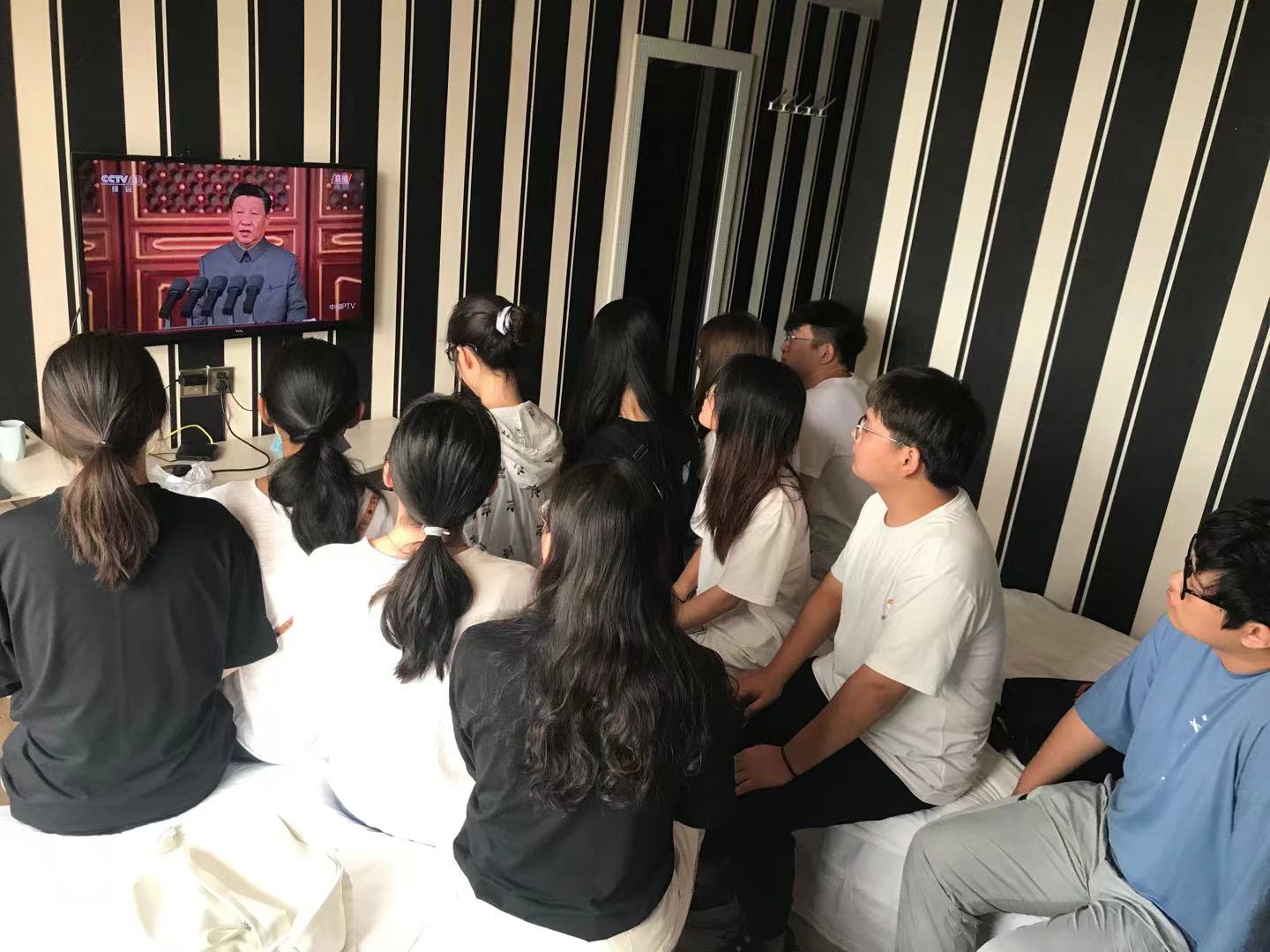 71日上午8时,庆祝中国共产党成立100周年大会在北京天安门广场隆重举行。中共中央总书记、国家主席、中央军委主席习近平出席大会并发表重要讲话。学院组织各系各部门负责人在五楼会议室集中收看,要求已经返家的学生在家收看。在外开展暑期社会实践、实习的各小分队也积极组织收看,做到学院师生收听收看全覆盖。
