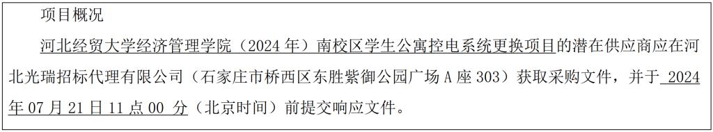 采购需求:2138CC太阳集团(2024年)南校区学生公寓控电系统更换项目全部内容(工程具体详见清单)。