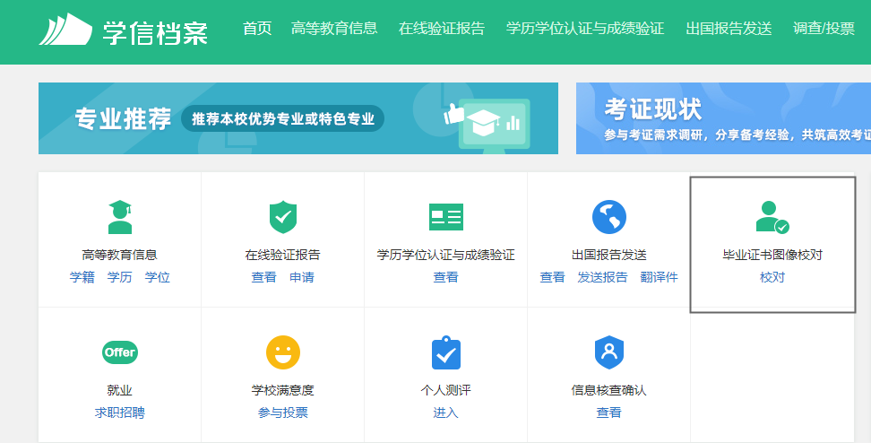 5、登录成功后,找到“毕业证书图像校对”选项,点击“校对”