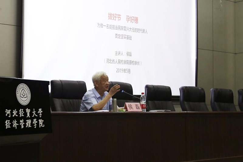 最后,侯老对在校的大学生发出了谆谆期冀:我们每一个人都应像珍惜生命一样珍惜名节,在实践中不断丰富自己名节的内涵,传递自己名节的温度,把自己的名节熔铸成人说人赞的品格标志。