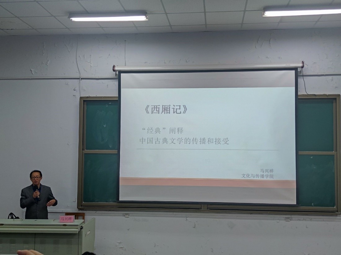 马兴祥副院长以“经典”的概念为切入点,从三个方面“为什么选择《西厢记》”、“从《莺莺传》到《西厢记》”、“中国古典文学传播方式和途径”透析经典文学《西厢记》。他指出,这本文学著作对当今时代的爱情观很有借鉴意义,在刷短视频成为潮流的时代,中国古代文学需要不断地传播、不断地接受。正是传播促成了经典,而经典又强化了传播,并鼓励同学们再次精读细读《西厢记》。