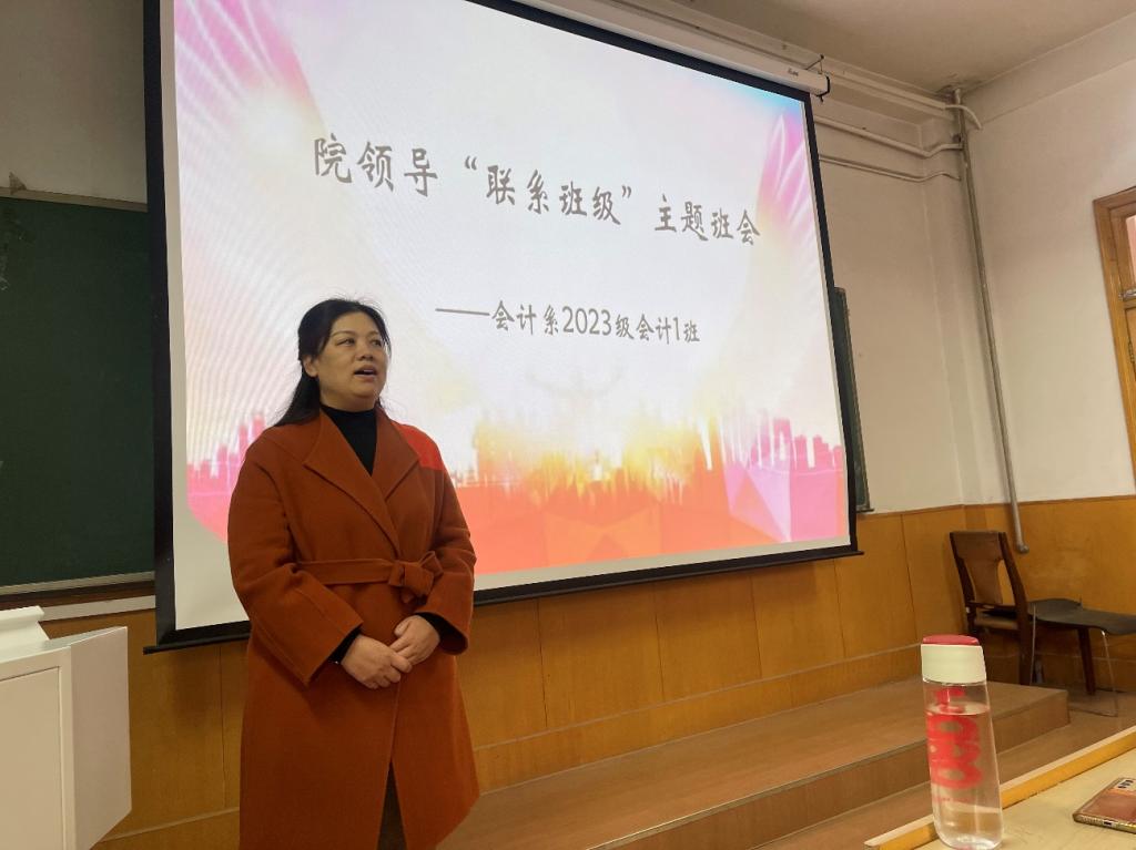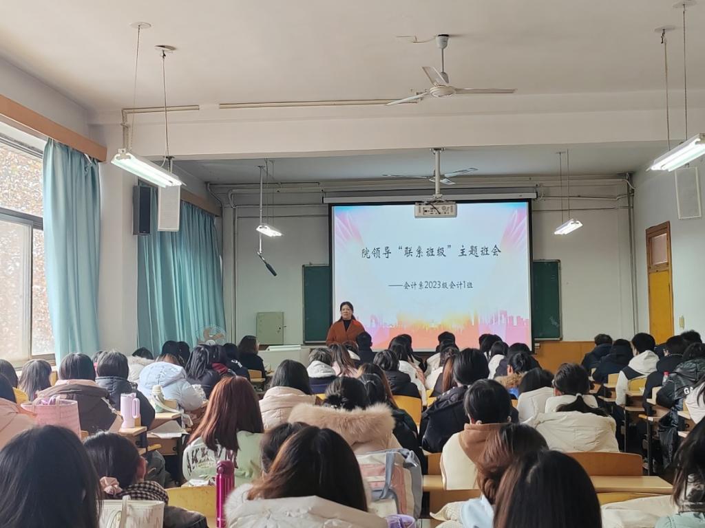 为扎实推进我院学生思想政治教育工作,认真落实院领导联系学生班级制度,积极发挥领导干部在学生成长成才过程中的教育引导作用, 12月11日下午,学院党委副书记张丽英走进包联责任班级---23级会计1班召开主题班会,会计系党委书记廖俊峰,副书记张艳敏以及23级会计1班全体学生参加了此次会议。