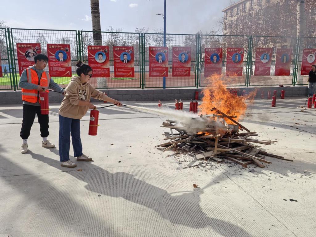 在活动的最后环节,消防队员组织师生们进行了实操灭火演练。在消防队员的耐心指导和细心纠正下,师生们亲手操作体验了灭火器的正确使用方法,进一步巩固了所学的消防安全技能。