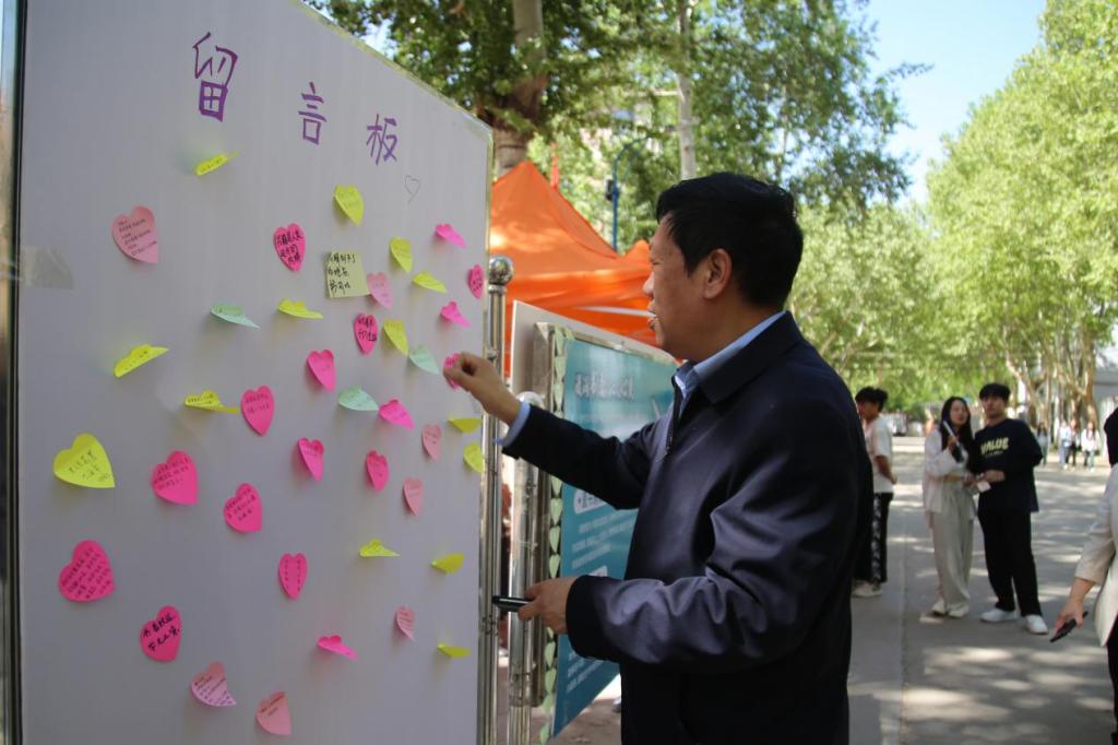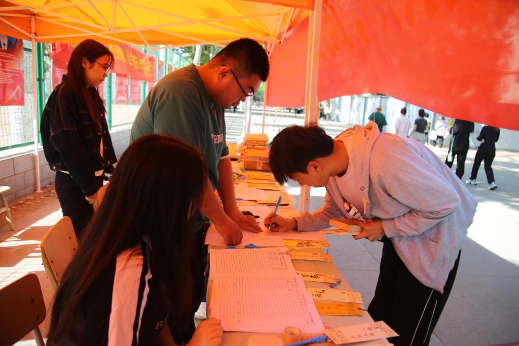 在捐书现场,各系师生纷纷携带自己闲置的图书前来,希望能够通过捐赠让这些书籍继续传递知识与智慧。志愿者们边收集整理图书边引导捐赠者填写信息。为了表达对捐赠者的感谢,学院邀请书画社的同学们特制了精美的文创书签,捐书者都会收到一枚这样的书签,作为他们爱心与智慧的见证。读书日活动得到了院领导的支持,他们应邀为同学们推荐好书并留下青年寄语,希望能给起到引航作用。现场还设置了一块爱心寄语展牌,吸引了许多爱书之人驻足,将自己的感想或寄语写在便利贴上,粘贴在展牌上,这些温馨的话语为图书旅行活动增添了更多的温度与意义。