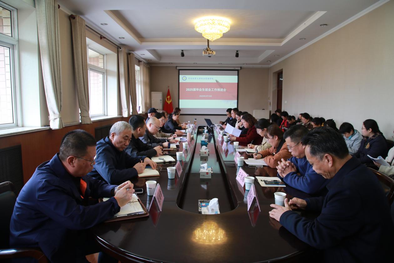 3月10日,学院在五楼会议室召开2025届毕业生就业创业工作推进会。院党委书记蔡杨、院长李大庆、院党委副书记刘佳出席,各系负责人及全体专兼职辅导员参加。会议由副院长王鸿喜主持。