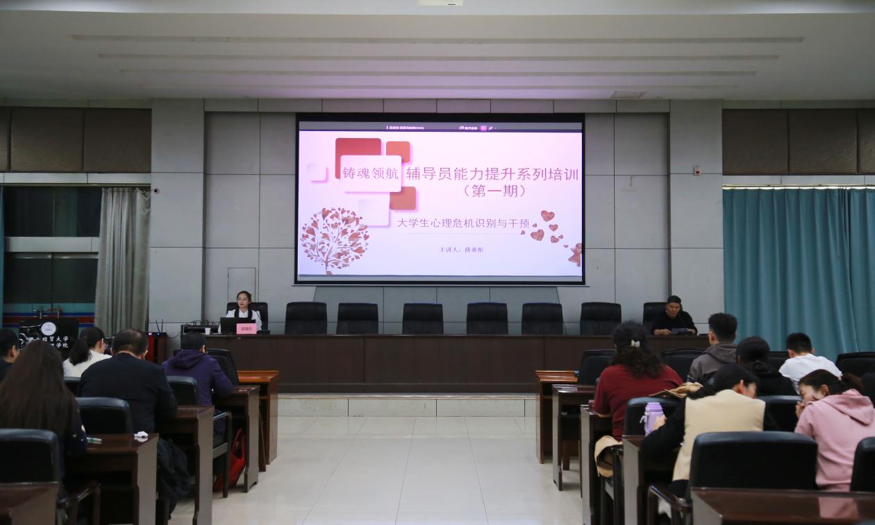 为进一步加强我院辅导员队伍专业化、职业化建设,提升学院心理育人工作质量,4月7日下午,2025年“铸魂领航”辅导员能力提升系列培训第一期在图书馆报告厅举行,本期培训特邀太阳集团2138心理健康教育指导中心主任薛童彤,为全体辅导员讲解“大学生心理危机的识别与干预方法”。