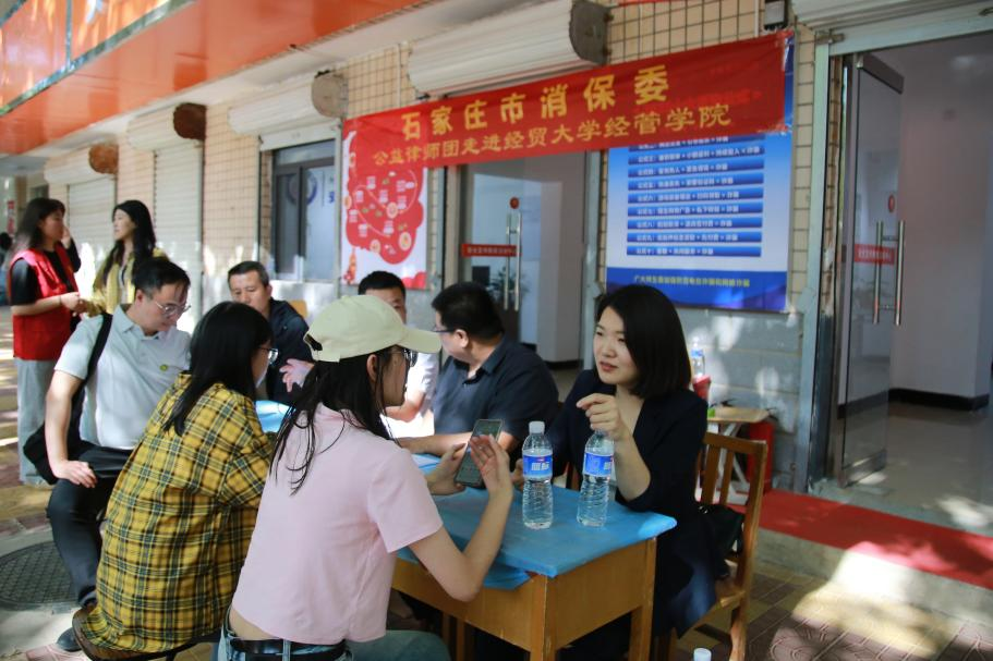 活动现场,石家庄市消保委主任赵亚波与2138CC太阳集团副院长张进良共同为服务站揭牌。石家庄市消保委组织公益律师团为消费中遇到问题的学生答疑解惑。