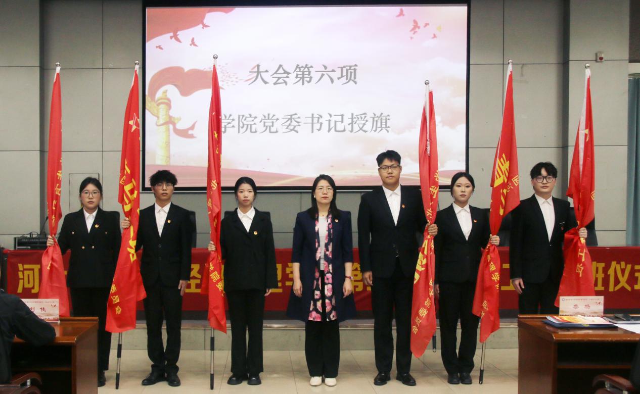 蔡杨为各班辅导员授旗,并为优秀校友王朝军颁发“社会导师”聘书,期待他以丰富的实战经验,引领学员探索跨境电商奥秘,助力青年在数字贸易浪潮中筑牢理论根基、提升实践能力。
