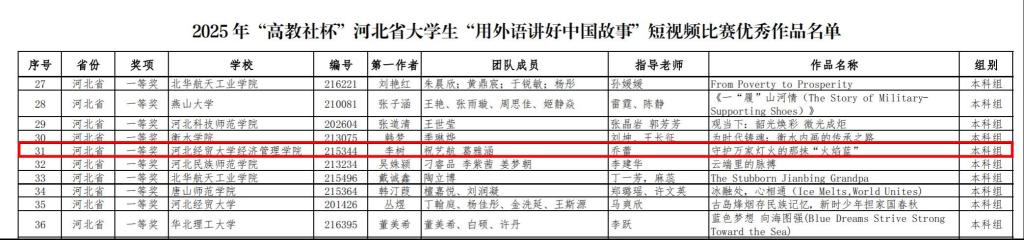 近日,2025年“高教社杯”河北省大学生“用外语讲好中国故事”短视频大赛圆满落幕,我院文法系推送的两部作品《盐碱地里的追“星”人》和《守护万家灯火的那抹“火焰蓝”》在进入省级交流环节的近百部作品中脱颖而出,分获省赛特等奖和一等奖。