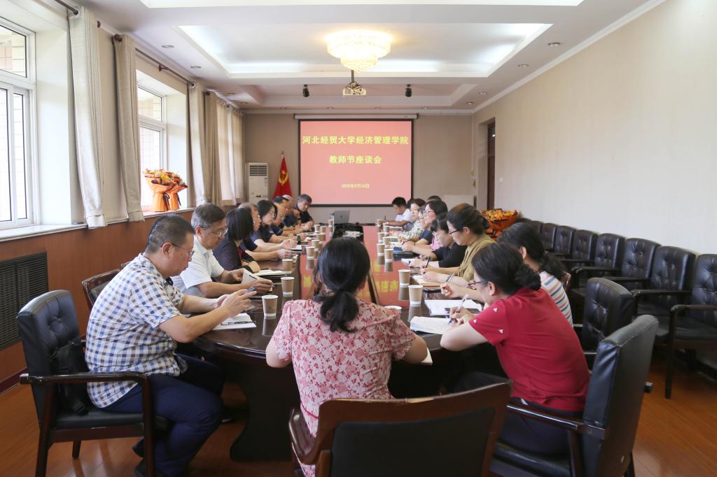 9月10日,为庆祝第41个教师节,我院在五楼会议室召开教师节座谈会。院党委书记蔡杨、院党委副书记,院长李大庆、院党委副书记刘佳与各系主任、各教学部部长、教务部和各系教秘亲切座谈交流。会议由副院长王鸿喜主持。