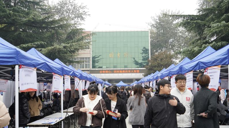 为促进2026届毕业生就业,10月24日上午,我院在图书馆广场顺利举办2026届毕业生秋季校园双选会。本次双选会吸引了200余家企业进校招聘,提供涵盖多个专业领域的就业岗位。学院领导蔡杨、王鸿喜及各系负责人、辅导员老师深入现场,与用人单位代表交流,详细了解岗位需求和毕业生求职意向。