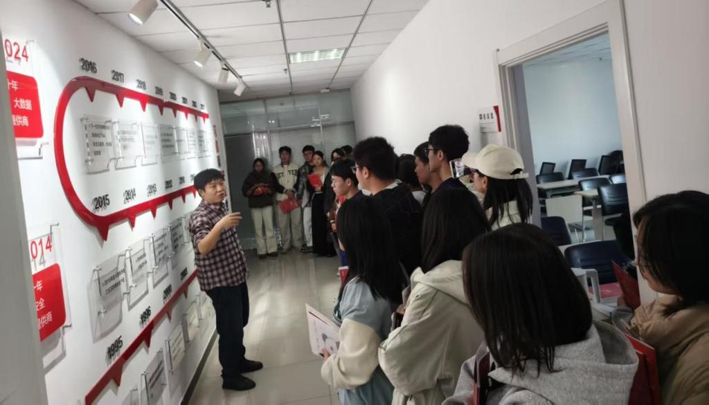 在公司参观环节,师生一行走进办公区域,亲身体验职场氛围与企业文化。工作人员沿途介绍公司发展历程,鼓励学生专注技术、重视安全、积极实践。